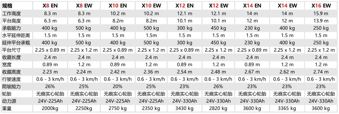 > 載重量可達500kg(X8/10EW)