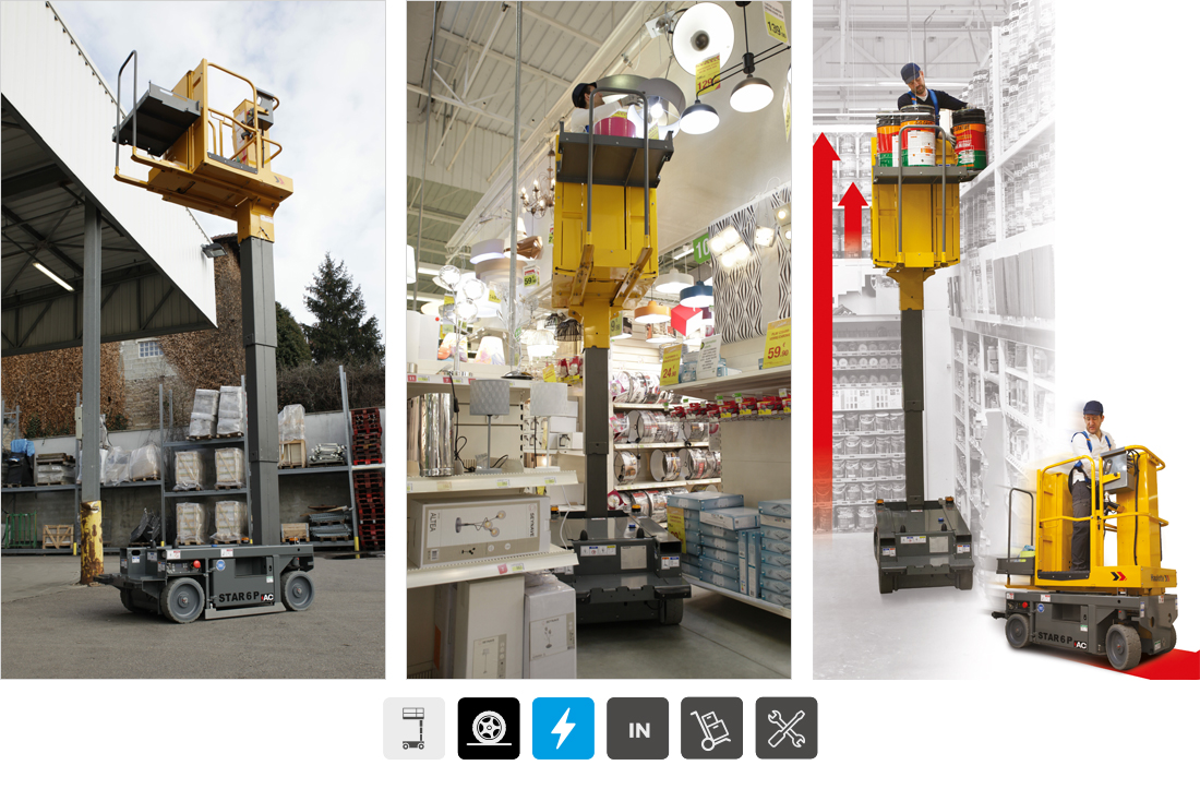 > 電動揀選托盤,帶可折疊側板和前護欄