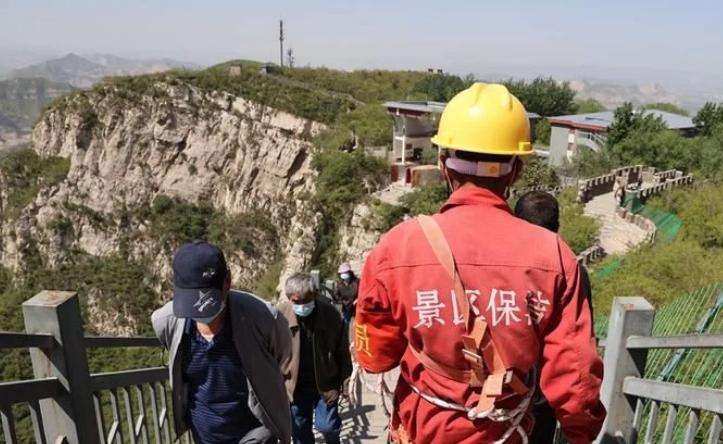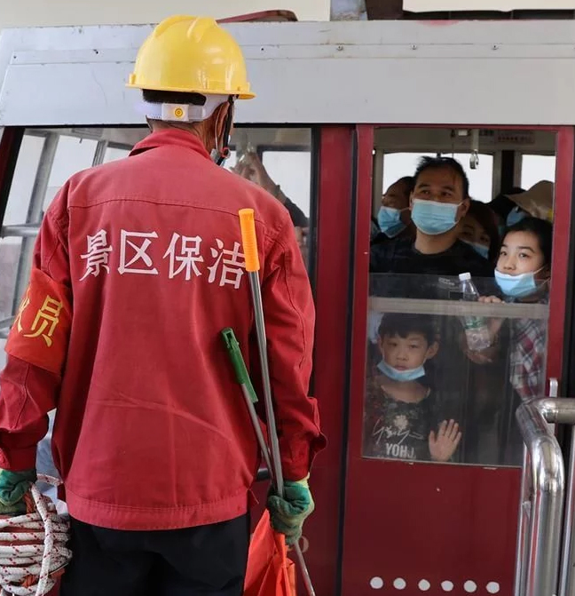 2021年5月5日,河北省石家莊市鹿泉區抱犢寨景區保潔員康連秀高空作業清理景區垃圾?!拔逡弧毙¢L假。該景區在做好疫情防控的同時,迎來客流高峰,16名環衛人員崗位值守,確保景區環境整潔迎游客。據負責人介紹,今年景區由于游客環保意識的增強,亂扔垃圾的現象明顯減少,保潔員人員勞動強度明顯減輕。