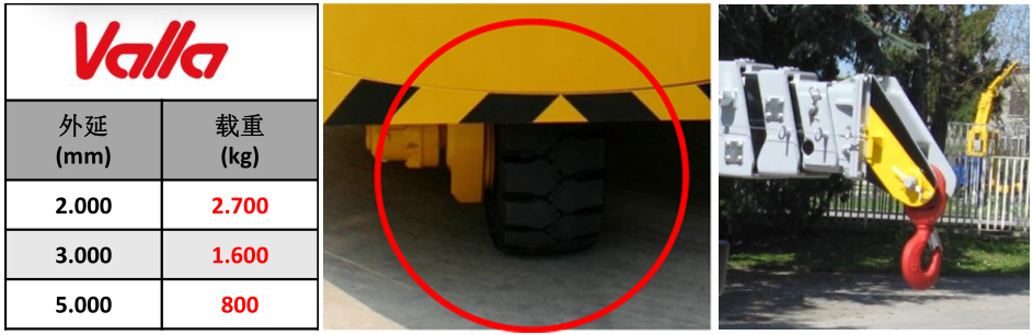 LMI( 重量檢測指示系統 ):實時電子式重量指示器,實時顯示起吊的重量,允許重量, 傾斜百分, 起吊的半徑, 角度, 伸縮臂和燈光指示
